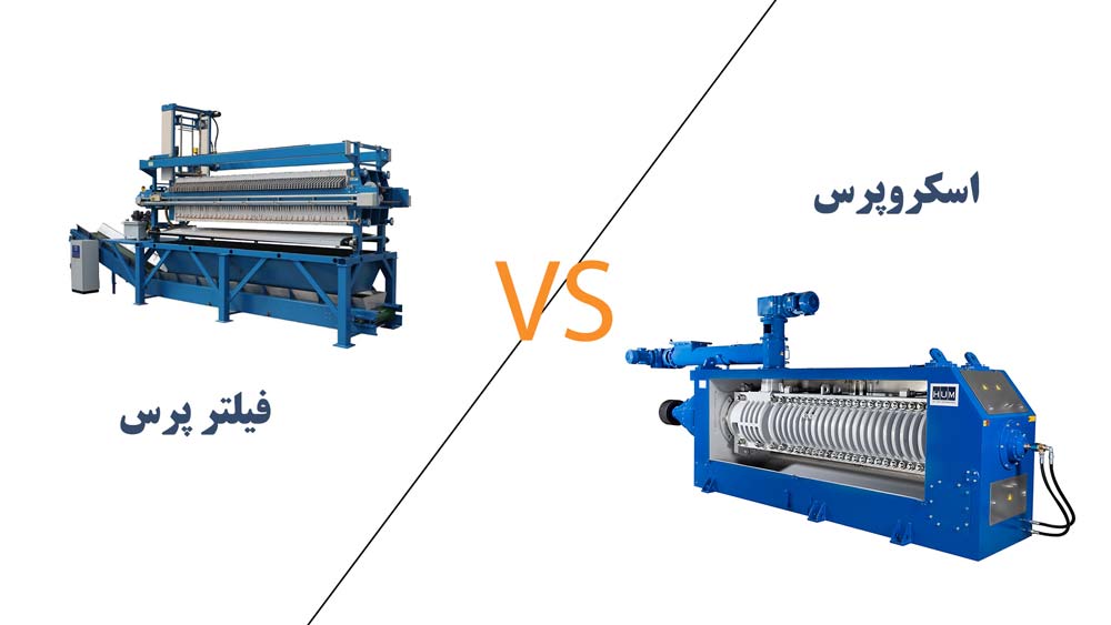فیلترپرس دستگاهی است که از صفحات فیلتر برای جداسازی ذرات جامد از مایعات استفاده می کند. این روش معمولاً در صنایعی مانند تصفیه آب، مواد شیمیایی و غذایی کاربرد دارد و به دلیل راندمان بالای جداسازی، محبوبیت زیادی دارد. در مقابل، اسکروپرس از یک ماردون (مارپیچ) برای فشرده سازی و آبگیری مواد استفاده می کند. این سیستم بیشتر در تصفیه فاضلاب و پردازش لجنهای صنعتی به کار می رود و مصرف انرژی کمتری نسبت به سیستم صفحه ای دارد. در ادامه جدول مقایسه کلی این دو سیستم آورده شده است: